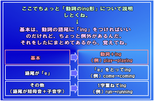 ちなみに、現在進行形って言葉は難しいけど、簡単だし、覚えるだけなので安心してね!