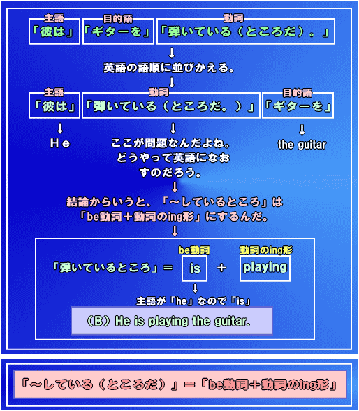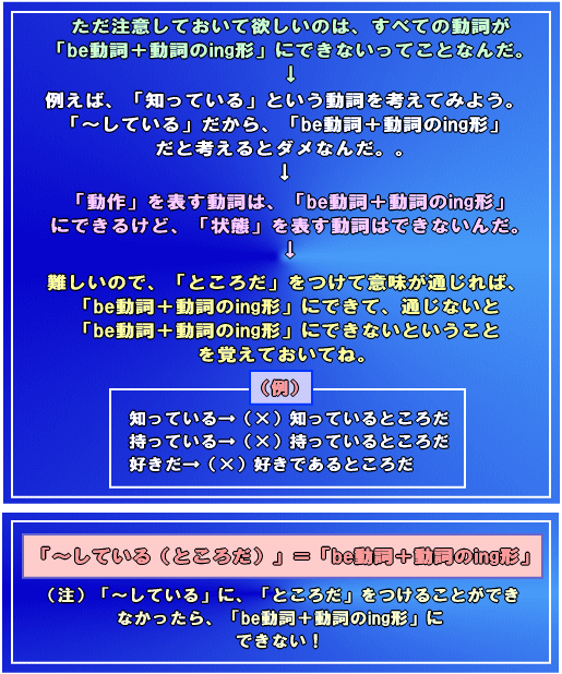 「〜しているところ」というのは「現在進行形」というんだけど・・・これから先の勉強は下記のレッスンを読んでね。