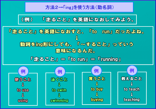 ※)ちなみに、実は、「不定詞の名詞的用法」と「動名詞」はニュアンスが違うんだ。このレッスンでは、ニュアンスの違いについては書いていないから、気になる人は「基本にカエル英語の本」を読んでみてね。
