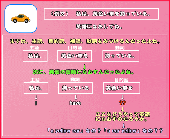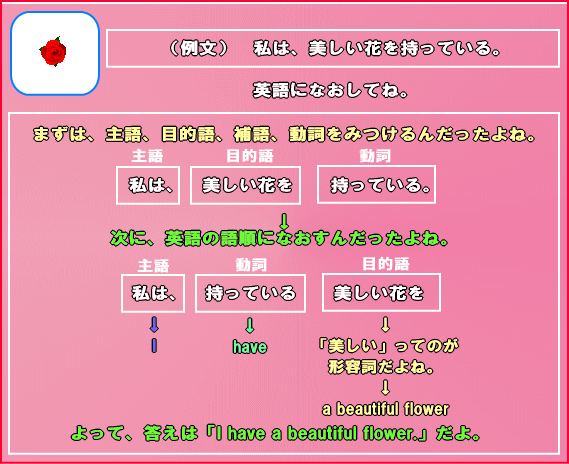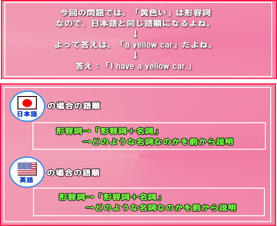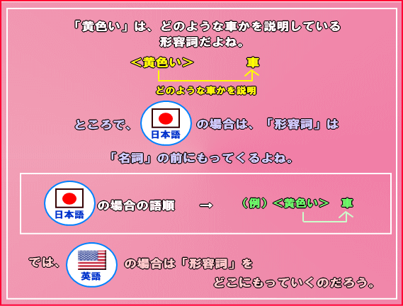このレッスンでは、形容詞を含む日本語を英語になおすとき(つまり、英作するとき)、どのような語順にすればいいのかについて説明しているよ。