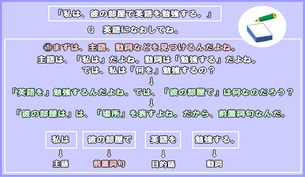 英語には「前置詞」というものがあるんだけど、日本語には、英語の前置詞に当たる言葉がないんだ。だから、「なぜ、ここに前置詞を入れる必要があるのかわからない」と感じる人が多くて、「前置詞=難しい」となっているわけ。