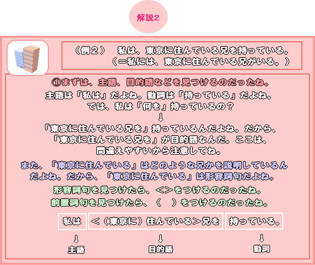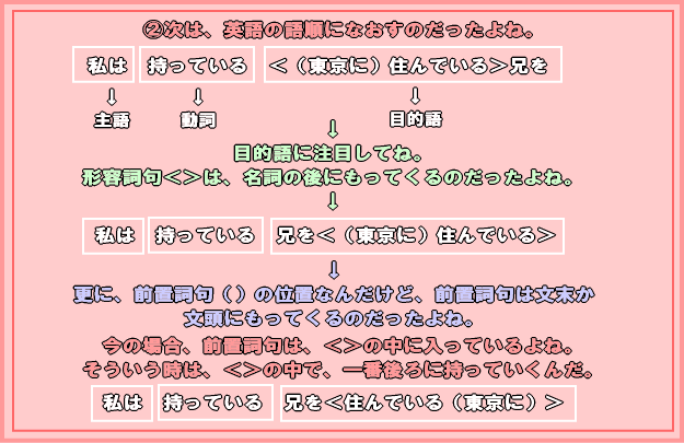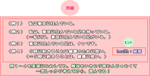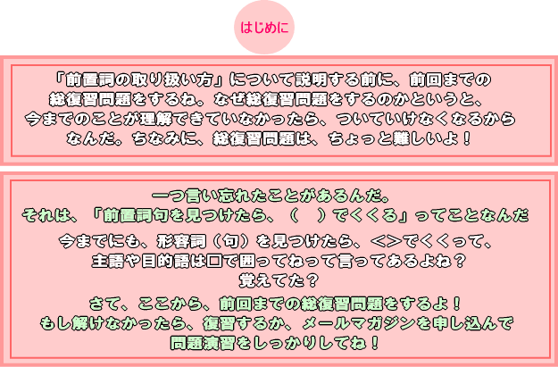 特に、レッスン26の前置詞のイメージを覚えていないと、手も足もでないから、このレッスンを読み進める前に、レッスン26を読んでおいてね。
